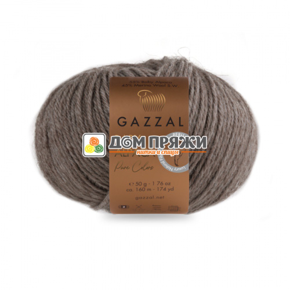 Пряжа Gazzal Baby Alpaca Pure Colors #6454 коричневый меланж. Состав: 55% беби альпака 45% австралийский меринос. Размер спиц: 2,5 - 4,0мм. Размер крючка: 1,0 - 3,0мм. Метраж: 160м.Вес: 50гр.