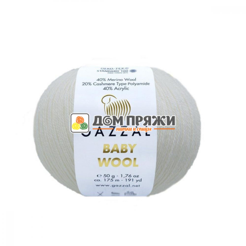 Пряжа Gazzal Baby Wool #801 белый. Состав: 40% мериносовая шерсть 20% кашемир 40% акрил. Размер спиц: 3,0мм. Размер крючка: 3,0 - 3,5мм. Метраж: 175м.Вес: 50гр.