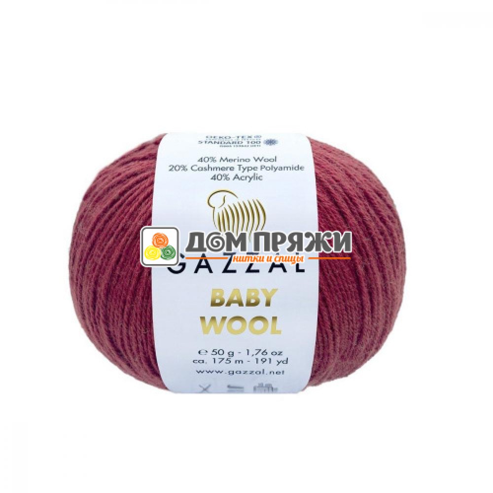 Пряжа Gazzal Baby Wool #816 т.красный. Состав: 40% мериносовая шерсть 20% кашемир 40% акрил. Размер спиц: 3,0мм. Размер крючка: 3,0 - 3,5мм. Метраж: 175м.Вес: 50гр.