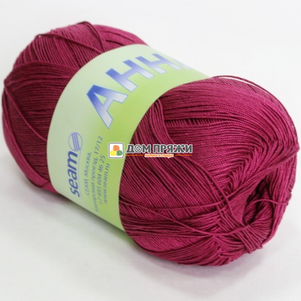 Пряжа Seam Анна16 #321 вишневый.Состав: 100% мерсеризованный хлопок. Размер спиц: 1,5-2,5мм. Размер крючка: 1,5-2,5мм. Метраж: 530м. Вес: 100гр.