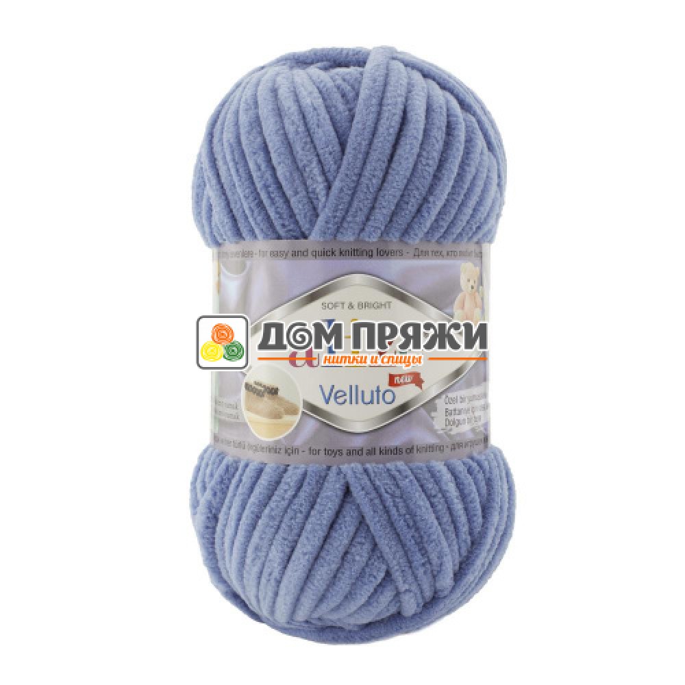 Пряжа Alize Velluto #374 св.джинс. Состав: 100% микрополиэстер. Размер спиц: 8. Метраж: 68м. Вес: 100гр.